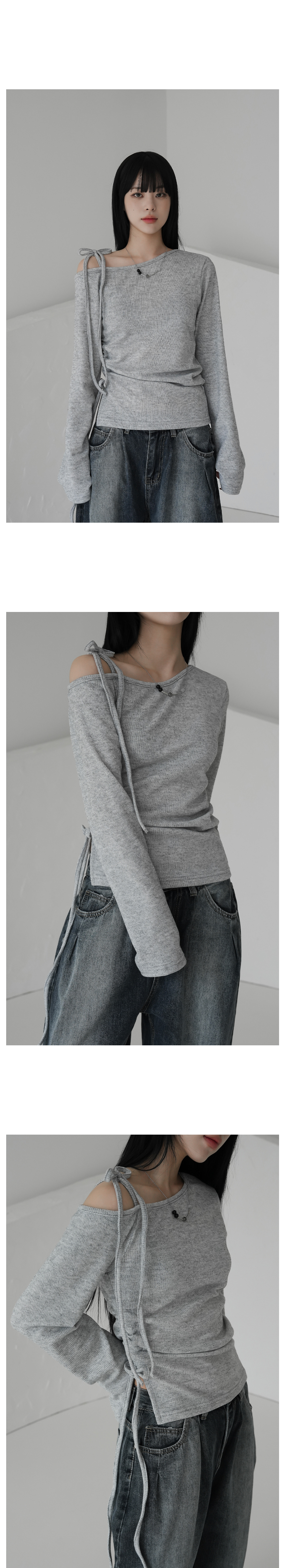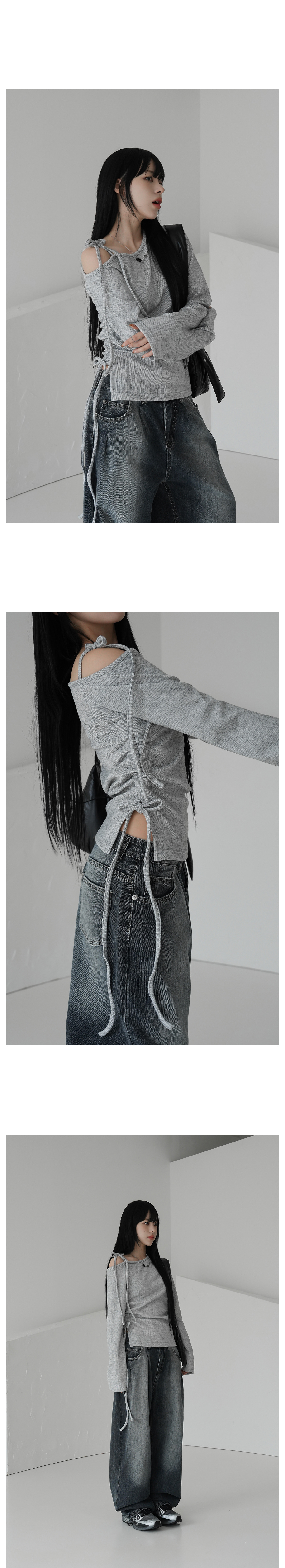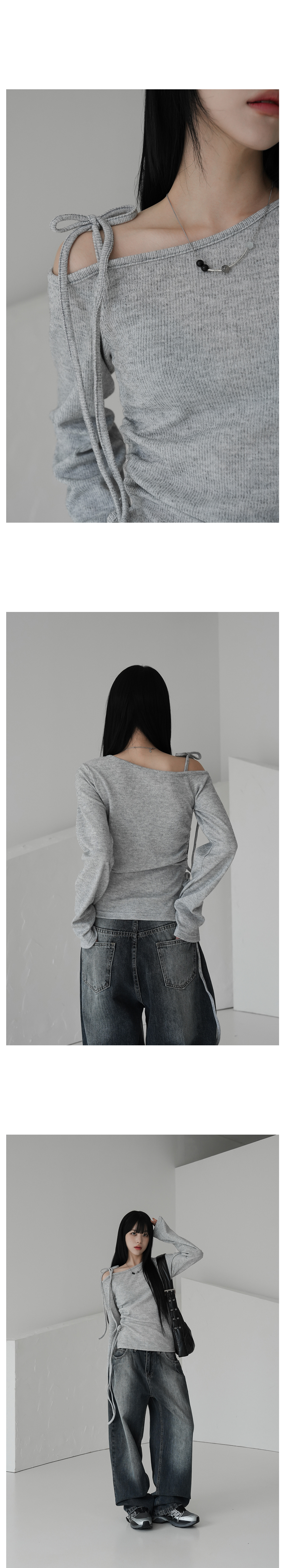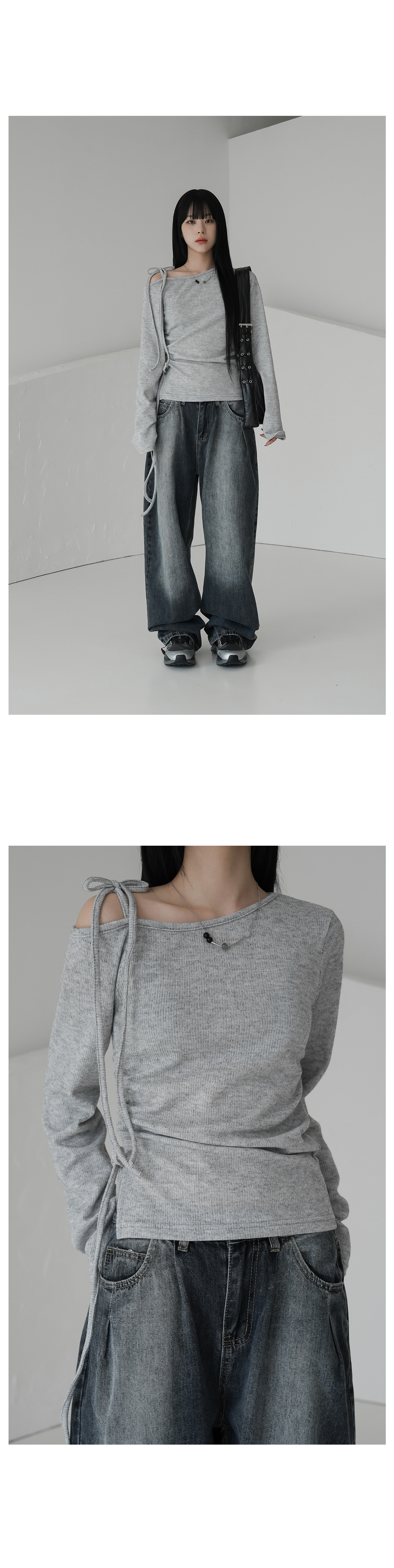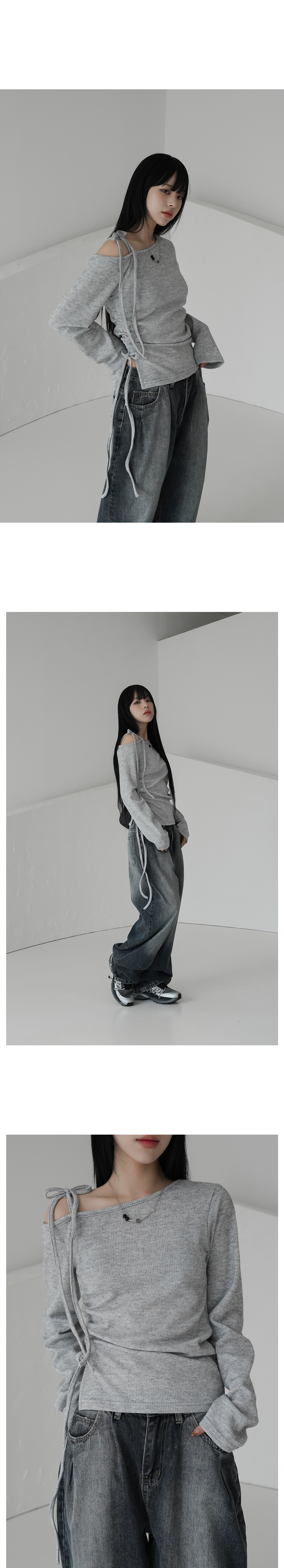 [層疊式單品!]/透視] MARY 透裏 單肩 短身長 長袖 T恤 無紋 露肩 分層 夏季 長袖